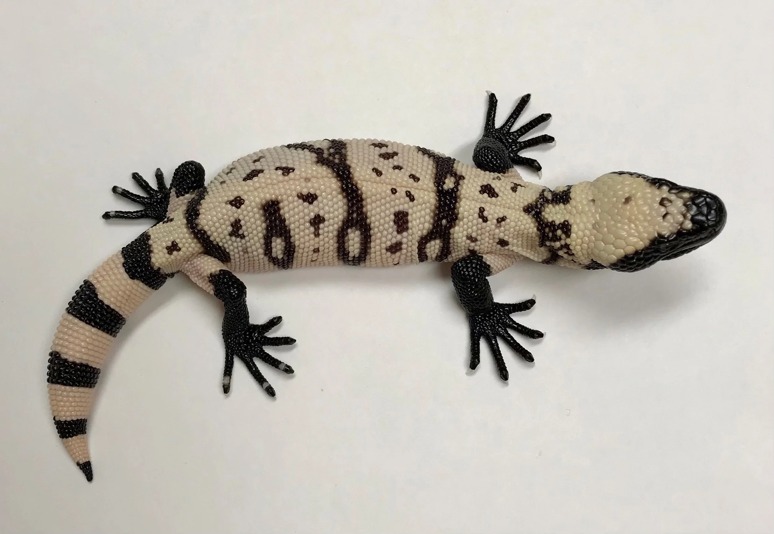 Our efforts have resulted in over 1000 Gila Monster hatchlings produced and sold since 1982. This work continues to set the standard for extreme color and pattern traits in Gila Monsters and contributes to the expanding herpetoculture interest in Heloderma. We are very pleased with the extraordinary hatchlings being produced as a result of this focused breeding program. Adult Utah Banded Gila Monster colony specimens and hatchling examples produced in previous years are shown above and below.